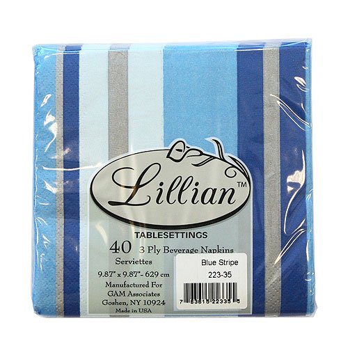 Lillian Tablesettings 40-Piece Beverage Napkins Set, Blue Stripe