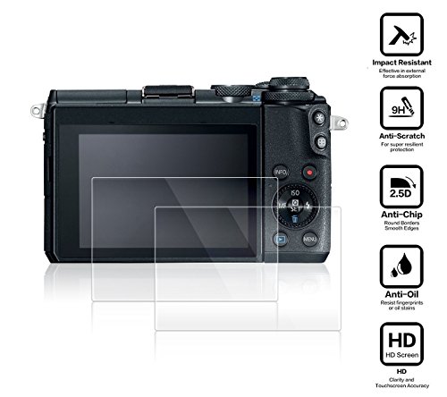 -. Feature : Canon EOS M6 用高品質の強化ガラススクリーンプロテクター / 衝撃の多い落下、傷、およびバンプからカメラの画面を保護する、2.5Dの丸みを帯びた9H硬度の強化ガラス製 / ほこり、傷やくぼみに対する長期間の保護。スクリーンプロテクターを隠すために、超薄型のクリスタルクリアーな素材が使用されています。 / 取り付けが簡単で、カメラの取り付けに合わせて正確にカットします。この強化ガラスをカメラのスクリーンに貼り付ける際の気泡のないアプリケーションで、高いタッチ感性を保証し、カメラの視覚体験の元の品質を維持します。 / 清掃が容易疎油性コーティングにより指紋や油状の縞模様が低減