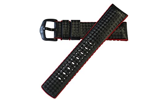 -. Title : Hirsch Performance ARYTON Carbon Fiber Leather Sport Watch Strap Rubber Lining Black w/Red Lining 20mm