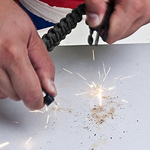 Magnesium Rod Fire Starter with built in Knife Scraper. Start a fire anywhere for warmth or to cook. Cut material with the sharp knife scraper tool. Super Loud Emergency Signal / Safety Whistle. Use short, quick puffs to deliver ear an piercing signal