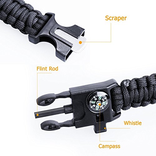 550LB PARACORD : The bracelet could be disassembled as rope for making traps, building tents, and in a lot other emergent situations;