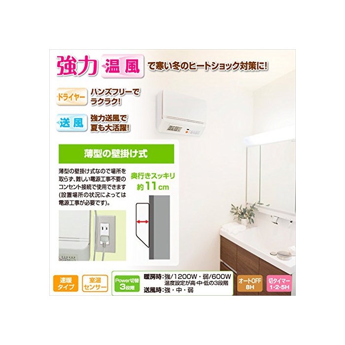 원본상품명:山善(YAMAZEN) 壁掛式 衣所風ヒタ (風/送風切替)(リモコン付)(ドライヤ機能付)(切タイマ付) ホワイト DFX-RJ12(W)