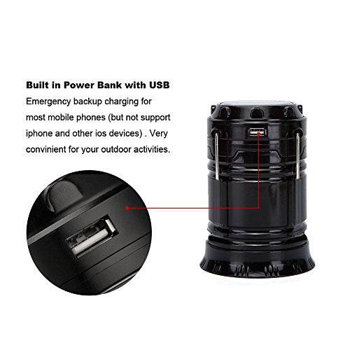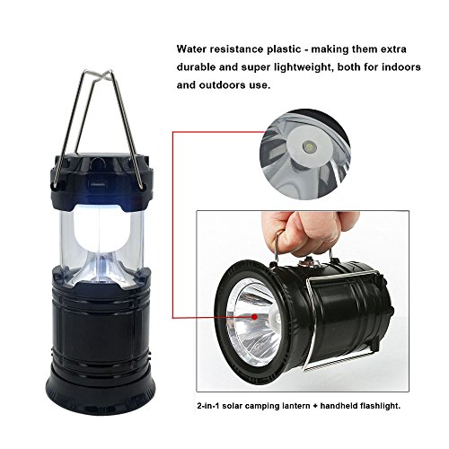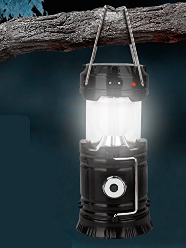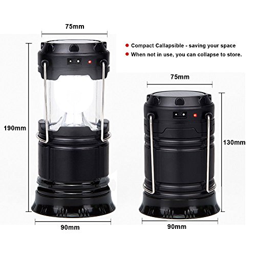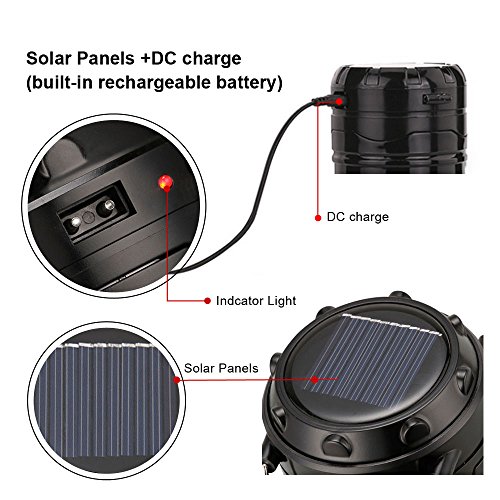 Compact Callapsible: This is the 2-in-1 solar rechargeable camping lantern and handheld flashlight. Use as camping lantern - Foldaway handles for easy suspension and portability. When not in use, you can collapse to store. Use as flashlight - a sperate handle and switch (in the bottom). You can use it in both modes at the same time.