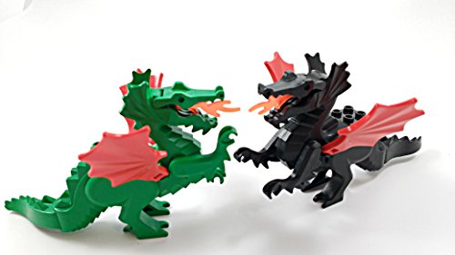 -. Binding : Toy -. Brand : LEGO -. EAN : 0754769824901 -. Feature : Lego Lot of 2 Castle Fire Breathing Dragons with Red Wings / Good versus evil with green and black colors. Each will hold 1 minifigure (not included) / Each dragon is approx. 4 3/4" long x 3" tall with mouth that you can open and tail can move / Great for Castle themes and Battle Scenes -. IsAdultProduct : 0 -. Label : LEGO -. Manufacturer : LEGO -. ProductGroup : Toy -. ProductTypeName : TOYS_AND_GAMES -. Publisher : LEGO -. Studio : LEGO -. Title : Lego Castle BLACK + GREEN DRAGONS Fire Breathing Red Wings -. UPC : 754769824901
