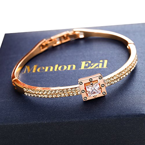 Menton Ezil Spiritual Guidance Swarovski Crystal Rose Gold Bangle Bracelet Love Designed Adjustable Jewelry