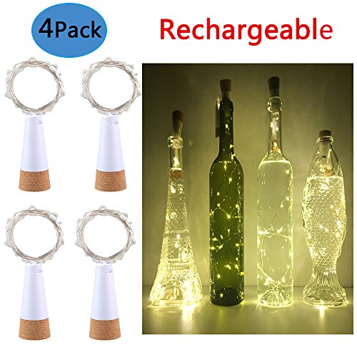 Rechargeable Wine Bottle Lights ,Anipopy 4 Pack Cork Shaped USB Powered String Fairy Lights for Bottle DIY,Christmas Halloween Gift Wedding Party Indoor Decoration (Warm white)