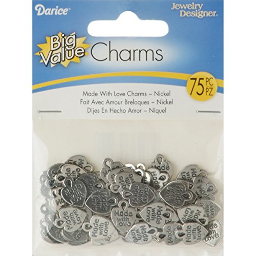 Darice 75-Piece 'Made with Love' Charms, Nickel