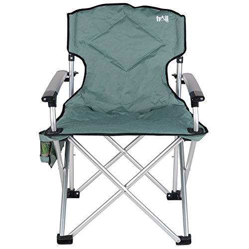 Studio : Trail Publisher : Trail Binding : Sports Product Description Trail Ultimate Padded Folding Chair. Folds away for simple storage and transportation. Heavy-duty design. Lightweight aluminium frame. Strong and sturdy plastic feet. Oversized armrests for ultimate relaxation. Arm locks connect to frame for maximum stability. Comfy double sponge padded material. Splash-resistant. Side mesh pocket for bottle. Side zipper pocket for phone or newspaper. Drawstring shoulder bag. Max load: 330lbs. 0