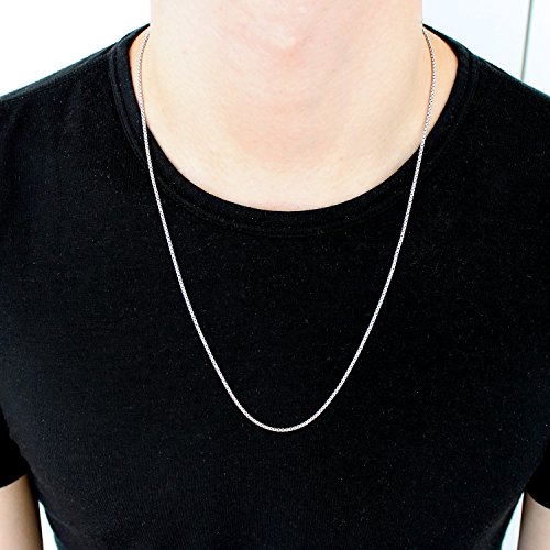 -. Binding : Jewelry -. Brand : Beauniq -. Department : womens -. Feature : This necklace is made of solid sterling silver and stamped "925." / This classic necklace looks great alone or with your favorite pendant. / Necklace is 1.8mm thick and comes in: -18 inch long ( weight: 7.1 gram); -20 inch long (weight: 7.9 gram); -22 inch long (weight: 8.7 gram); -24 inch long (weight: 9.5 gram); -26 inch long (weight: 10.3 gram); - 30 inch long (weight: 11.9 gram). / For best results, we do strongly recommend using a tape measure to check neck size before placing your order. / Rhodium plated to prevent tarnishing -. Label : Beauniq -. Manufacturer : Beauniq -. ProductGroup : Jewelry -. ProductTypeName : FINENECKLACEBRACELETANKLET -. Publisher : Beauniq -. Studio : Beauniq -. Title : Solid Sterling Silver Rhodium Plated 1.8mm Round Box Chain Necklace, 18" 20" 22" 24" 26" 30"