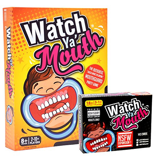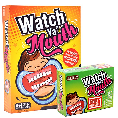 Watch Ya’ Mouth is the AUTHENTIC, Hilarious, Mouthguard Party Game. Originated in viral videos, Launched on Kickstarter, and now on Amazon just for you! In this laughter-inducing, competitive card-based game, teams of players, hampered by cheek retractors, attempt to read and interpret/speak out phrases and…. Hilarity ensues! Good for Ages 8+, with virtually unlimited players (when played using our “Alternate” rule set), Watch Ya’ Mouth is a must for any gathering, party, game night, or family night. Our mouthpieces are FDA and CE certified, our cards are thick and durable, and our community is second to none. With a variety of phrase packs available, ranging from Family-Safe to Adult-Only, there’s something for everyone. Be warned: Stomach-Cramping, Eye-Watering laughter is a very frequent occurrence. “One of the funniest party games there’s been” Learn it in seconds, play it for hours, and create lasting memories with your friends and family. We’re a small, independent, and extremely hard working team whose mission is to make you laugh. Join us, and welcome to the party!