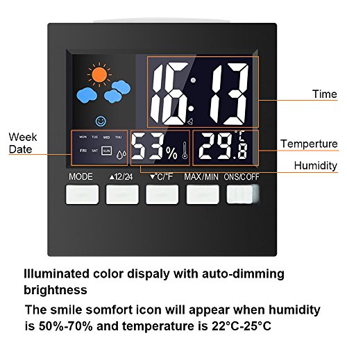 - Indoor digital thermometer - ,Weather Channel Thermometer,Samshow Temperature and Humidity Monitor with Alarm Clock, Time Date and Large Night Lighting LCD Screen Displaying,Battery Included