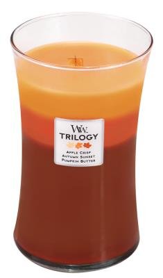Studio : WOODWICK Publisher : WOODWICK Binding : Kitchen Product Description WoodWick Trilogy 22 Oz. Candle - Autumn Comfortsis a beautiful blend of color and fragrance. Each color layer contains a different fragrance. As the candle burns, each fragrance and color melts into the next layer, creating a unique new fragrance and the soothing sound of a crackling wooden wick.Burn Time up to 180 hours.WoodWick Trilogy 22 Oz. Candle - Comfortsfeatures the heartwarming smells of Sonoma Sunset, Pumpkin Butter Apple Crisp which combine to make the perfect Fall candle. 0