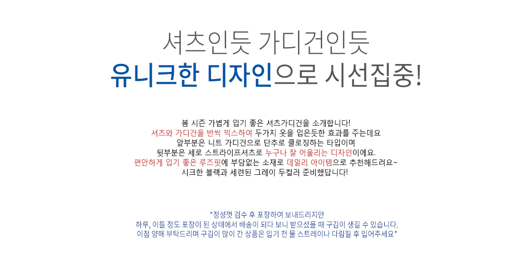 | 소재(Material) | 셔츠(shirts)면(cotton/)100%니트(knit)아크릴(acrylic/)60%+폴리(polyester/)40% | |