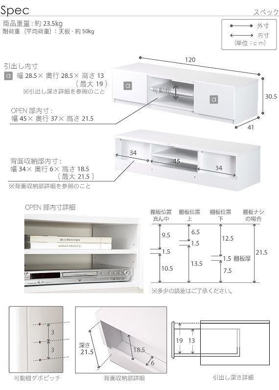 ●サイズ(cm):幅120x奥行41x高さ30.5・約23.5kg