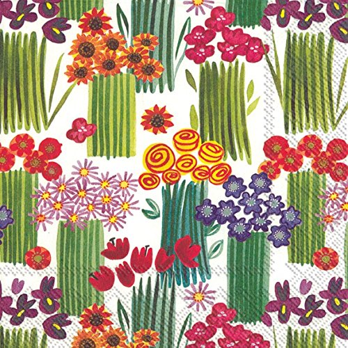 Boston International 20 Count 3-Ply Paper Cocktail Napkins, Flower Bundle