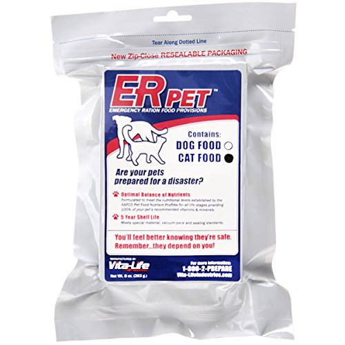 FEMA recommends planning ahead for disasters by preparing a minimum of three days’ worth of food and water for you and your pets. Stores may be closed for extended periods of time in an emergency, so stock up on quality food that will last until you need it. ER-Emergency Ration is a US Department of Homeland Security / US Coast Guard approved manufacturer of quality emergency food rations and a supplier to the American Red Cross and ASPCA Pet Survival Kits. ER-Emergency Ration dry cat food has been hermetically vacuum sealed and specially packaged to guarantee safe storage up to a 5-year shelf-life. Rations are formulated to meet the nutritional levels established by AAFCO’s cat food nutrient profiles. Food needs will be different for each animal, but ER-Emergency Ration 8 ounce packets can provide up to three days’ worth of nutrition in an emergency. Larger animals will need more food, so plan accordingly for your pets and stock up on ER-Emergency Ration pet food.Feature