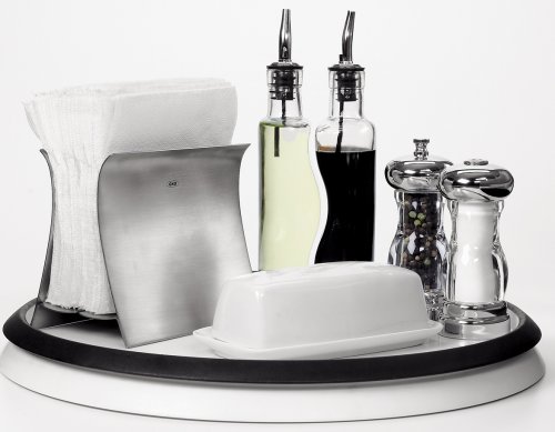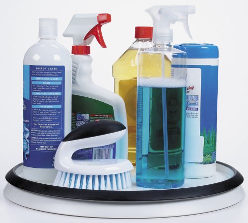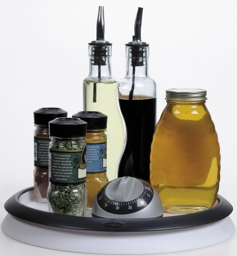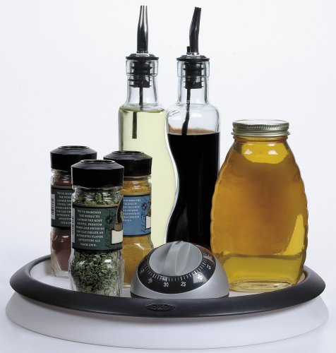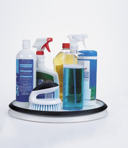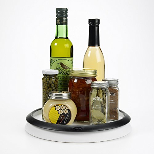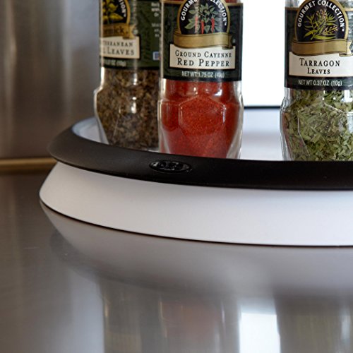 -. Feature : 16-Inch turntable ideal for spices, sauces, cleaning products and more / Made of durable plastic construction / Nonslip rubber feet protect all surfaces / Steel ball bearings provide smooth spinning / Larger base prevents interference with surrounding items and walls