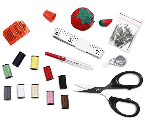Included Accessories - Notions Package includes these essential items: Scissors, Tape Measure, Straight Pins, Needles, Needle Threader, Thimble, Stitch Ripper and Thread (in 10 assorted colors).