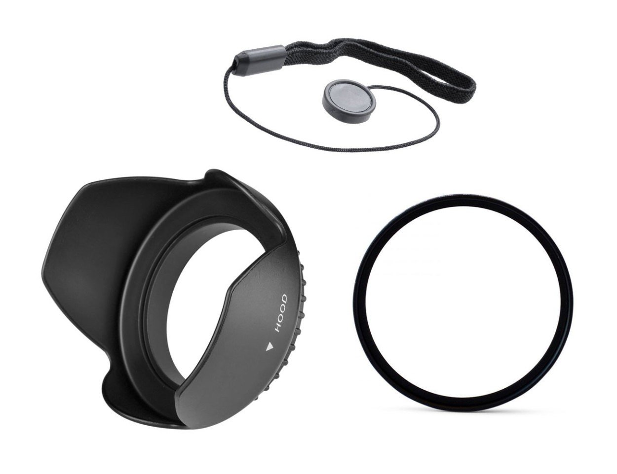 3 point set 52 mm UV filter + flower lens lens hood + lens cap lost prevention strap