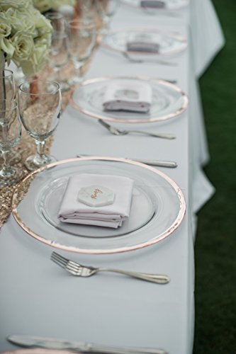 Studio : Ms Lovely Publisher : Ms Lovely Product Description These round elegant charger plates add sophistication to any table setting while the shiny metallic edge gives off a glamorous feel. Leave on the table regularly to add decor to a room or take them out and use under your regular dinner plate for a special occasion. These decorative service plates look stunning when used for a wedding or special event and can be used multiple times. The charger plates come in a pack of 4 and are not made to put in the dishwasher or microwave. 0