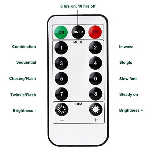- A Remote Makes All the Difference! -- with a remote in hand, you can easily turn on/off the lights; set them in timer to auto on and off each day; adjust the brightness; switch from flash to twinkle to slow fade to steady on etc.; ALL IS IN CONTROL!