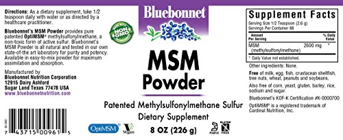 Bluebonnet's MSM Powder provides pure patented methylsulfonylmethane (OptiMSM), a superior, distilled form of active Sulphur.