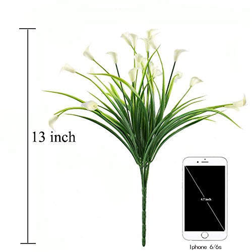 Artificial Flowers Outdoor Fake Plants Faux Shrubs Calla Lily Plastic Greenery UV Resistant Window Box 4 Pcs Wholesale Arrangement for Garden Home Kitchen Dining Room Hanging Planter Cream