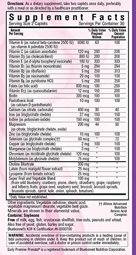Since expecting moms often suffer from morning sickness and GI distress, Bluebonnet is proud to announce the arrival of Early Promise Prenatal Gentle Multiple Caplets, a truly gentle formula that provides responsible levels of micronutrients (vitamins, mineral and specialty nutrients) based on what the scientific community has agreed as optimum for pregnant and nursing women. This gentle, scientific formula provides at least 100% of all the essential vitamins for pregnant/lactating women from sources known to be gentle on mom's sensitive GI as well as providing nearly 100% of all the essential macro- and micro minerals. Although calcium and magnesium are provided in this formula under the recommended daily value (30% and 44% of the DV for pregnant/lactating women, respectively), they are provided in a 2:1 ratio and at potency levels that cover the dietary gaps in the typical American diet.Feature