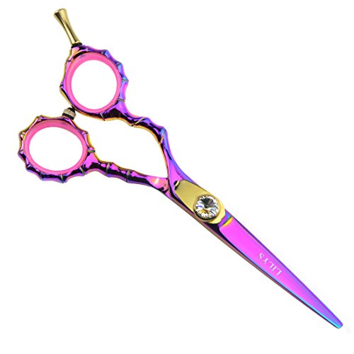 LILYS PET HIGH-END SERIES LEFT-HANDED 5.5" 440C Stainless Steel Professional Barber Razor Edge Hairdressing Scissors Titanium Coated (Rainbow)