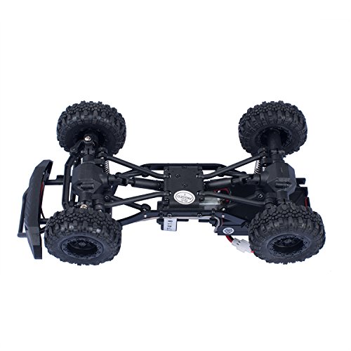 RTC (Ready to Crawl) out of the box. You only need 4pcs AA battery for the TX Scale looks ladder frame Chassis Nice looking design 80's pick up truck finished body Full proportional electronics system for best perfoemance Multi-link suspension system Full time 4WD system Telescopic main drive shaft Coil spring shock system 4 gear transmission case Nylon Composite material Heavy duty drive train Pinion and ring gear system on front and rear axle Chassis mounted steering servo