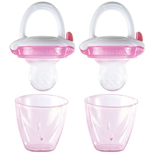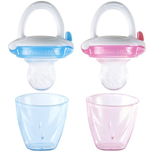 -. Binding : Baby Product -. Brand : Munchkin -. Feature : Soft silicone pouch for easy feeding of homemade or store-bought baby food / Small hole at the bottom allows you to feed purees to young babies / Great for travel - comes with on-the-go cap / BPA-free, top rack dishwasher safe / 4 plus months -. Label : Munchkin -. Manufacturer : Munchkin -. ProductGroup : Baby Product -. ProductTypeName : BABY_PRODUCT -. Publisher : Munchkin -. Studio : Munchkin -. Title : Munchkin Baby Food Feeder, 2 Count