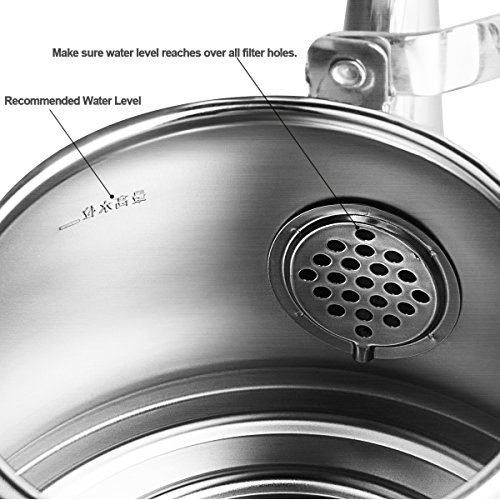 Steaming whistle which can make a loud whistle when water reaches a boil.(Please make sure the water level reach to the safety line and avoid full fill.)