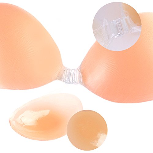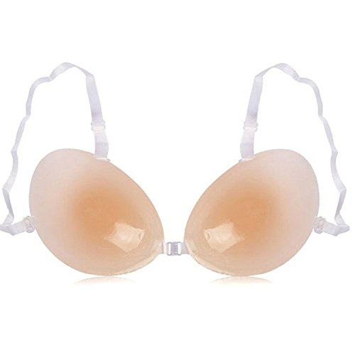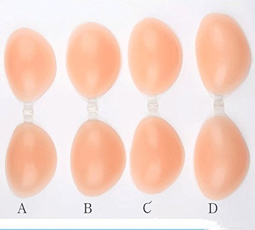 Aibrou Self Adhesive Silicone Invisible Push-up Bra With Adjustable Clear Straps SIZE CHART: A CUP: 70A(32A), 70B(32B), 75A(34A),80A(36A) B CUP: 70C(32C), 75B(34B), 80B(36B),85A(38A) C CUP: 85B(38B), 75C(34C), 80C(36C),70D(32D) D CUP: 85C(38C), 75D(34D), 80D(36D),85D(38D) Features: The bra feels natural and is suitable for evening, backless dresses, backless halter blouses, club/party dresses or most low cut tops. Applications: The application to the breast are simple to apply or remove - just position the bra to the breast for the best shape and clip and buckle using the front clip adding a boost and cleavage. When ready to remove, just unclip and lightly remove from the skin. HOW TO CARE FOR: Simply wash with clean water then air dry. When item is dry, the adhesive regenerates itself for next use - make sure surface is clear of debris. NOTE : Do not recommend for hot temperatures, because sweat may make it slip down. Package Includes: 1 Pair Silicone Push-Up Bra
