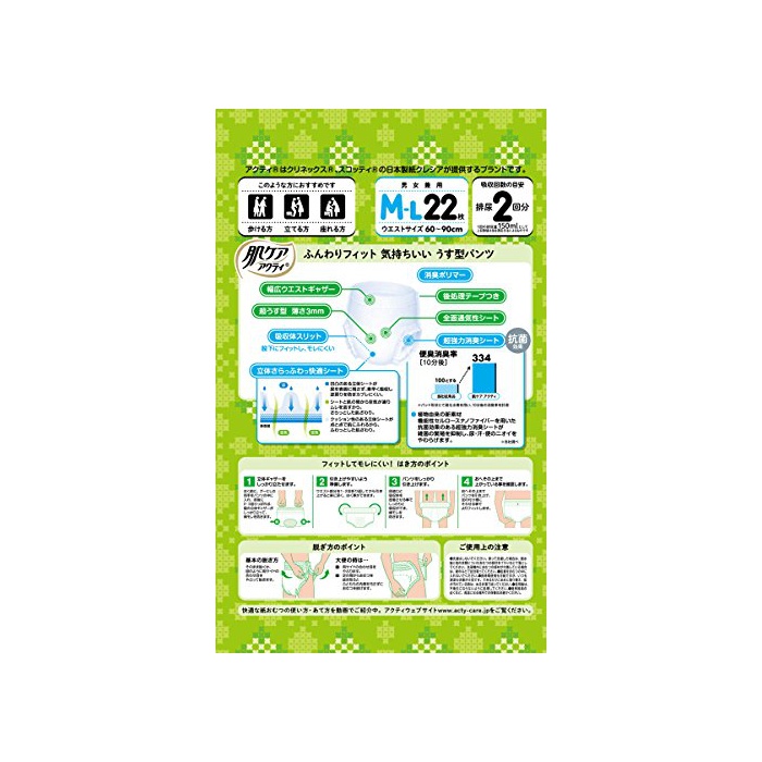 원본상품명: 肌ケアアクティ ?持ちいい うす型パンツ M-Lサイズ 【ADL?分:一人で?ける方】 22枚