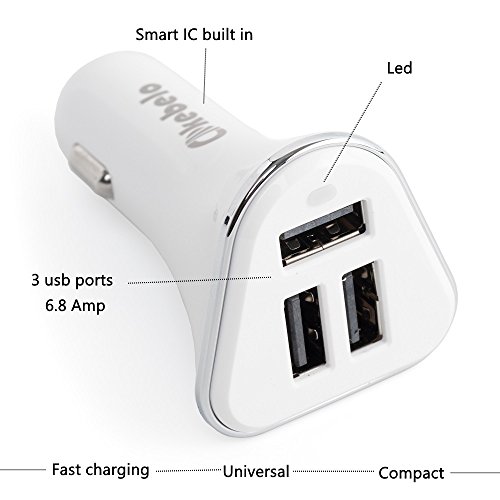 -. Binding : Wireless Phone Accessory -. Brand : kebelo -. Color : white -. Feature : Car Phone Charger , Compatible With Iphone 6/6plus - Samsung Galaxy S5/S6/Edge - Gps And More / Smart IC technology - the kebelo car phone charger automatically reconize your device and deliver the right power . / High speed charger thanks to the outstanding 6.8 amp . The kebelo usb car charger is designed to charge fast any device / Compact design will fit any vehicle from 12 to 24 volts . The kebelo mobile phone car charger is built to reduce your charging time . / The kebelo smartphone charger is the only tool you'll need to charger all your devices at the same time. -. Label : kebelodirect -. Manufacturer : kebelodirect -. Model : icar -. PackageQuantity : 1 -. ProductGroup : Wireless -. ProductTypeName : WIRELESS_ACCESSORY -. Publisher : kebelodirect -. Studio : kebelodirect -. Title : Kebelo® Car Phone Charger [3 Usb Ports] 6.8A / 34W , Compatible With Iphone 6/6plus - Samsung Galaxy S5/S6/Edge - Gps And More