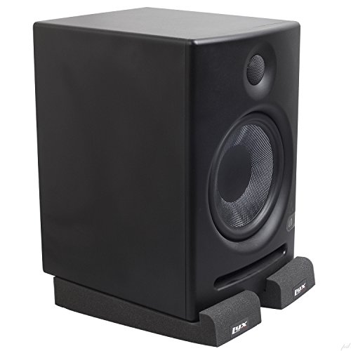 Monitor isolation pads are shown under YAMHS5 studio moniters. Even on typical speaker stands LyxPro MNS-4 optimize the performance of your reference monitors.