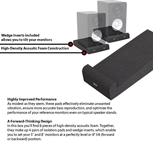 Included a wedge piece allows you to tilt your monitors or speakers forward or backwards up to 8 degrees!