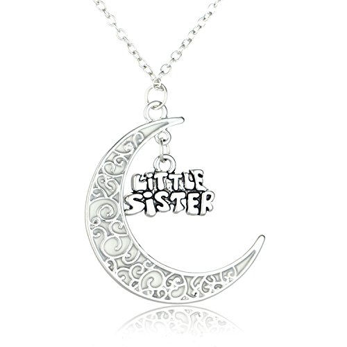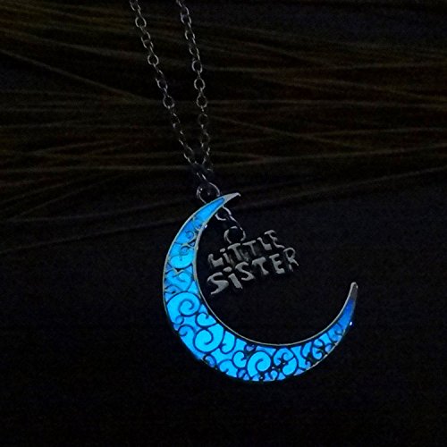 -. Title : Linsh Hallow Out Carved Moon Little Sister Pendant Necklace Glow in Dark Jewelry Color Silver