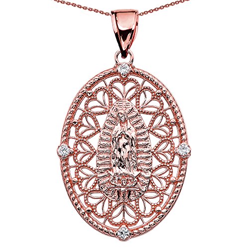 -. Binding : Jewelry -. Brand : Religious Jewelry by FDJ -. Department : womens -. Feature : Gold Lady of Guadalupe pendant necklace / exquisitely crafted with authentic 14 karat rose gold in perfect polished finish / comes with free special gift packaging / made in the USA yet offered at factory direct jewelry P.R.Ice / ships from the manufacturer directly to the customers -. Label : Claddagh Gold -. Manufacturer : Claddagh Gold -. Model : QP5283R-DI-14k -. MPN : QP5283R-DI-14k -. PartNumber : QP5283R-DI-14k -. ProductGroup : Jewelry -. ProductTypeName : FASHIONNECKLACEBRACELETANKLET -. Publisher : Claddagh Gold -. Studio : Claddagh Gold -. Title : 14k Rose Gold Our Lady of Guadalupe Pendant Necklace With Diamonds