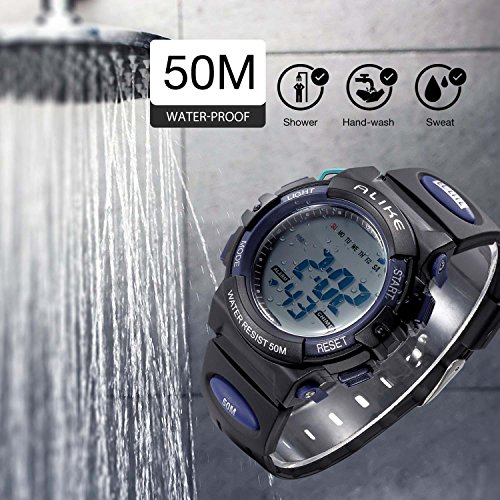 WATERPROOF FOR DAILY USE: 50M Water Resistant, HANDWASH, SWIMMING, NO PROBLEM ! Kid can feel free to wear the cool electronic waterproof wristwatch when children playing sport. NOTE: Please DO NOT press any buttons in the water or wear this watch for longtime underwater activities.