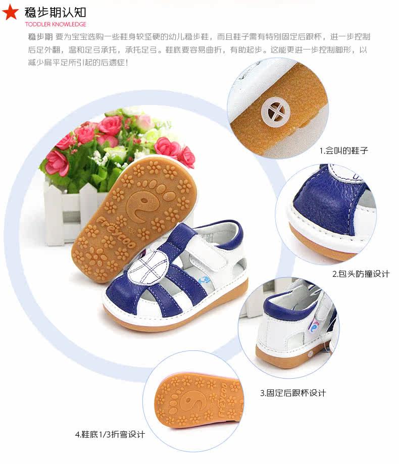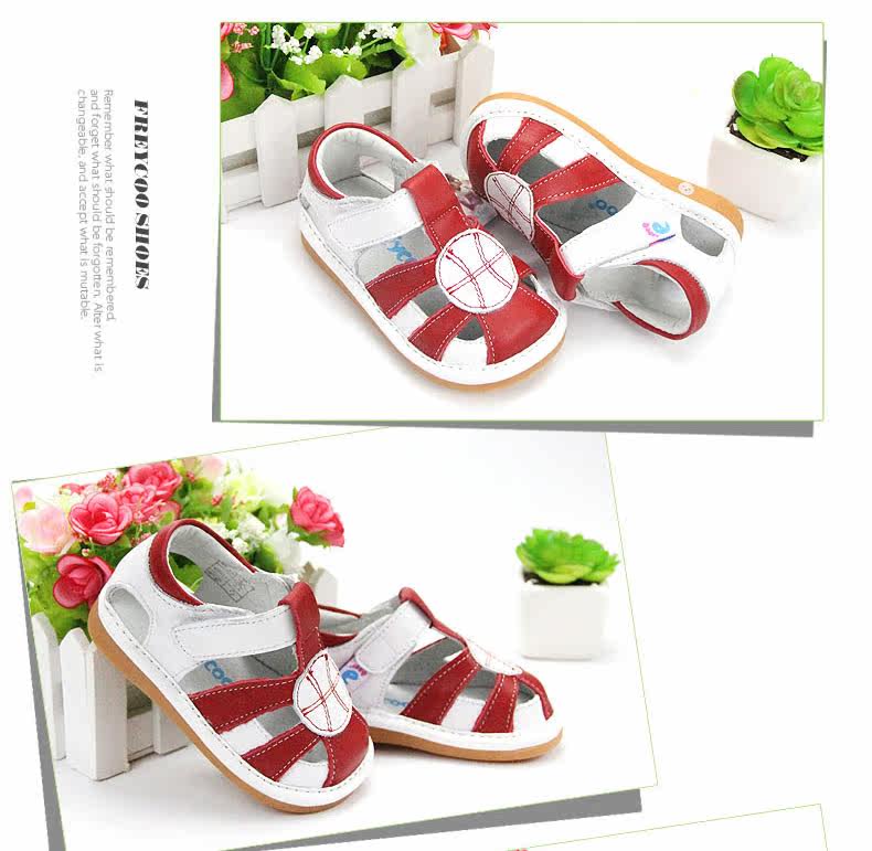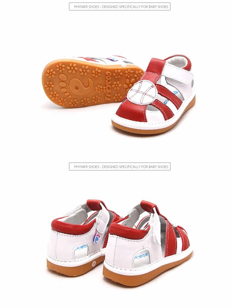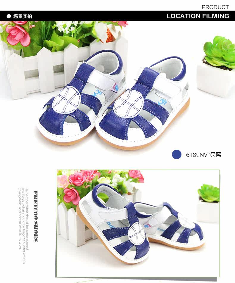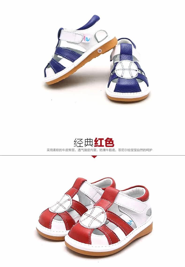 芙瑞可男女童凉鞋 真皮包头凉鞋 1-2-3岁宝宝鞋叫叫鞋儿童学步鞋