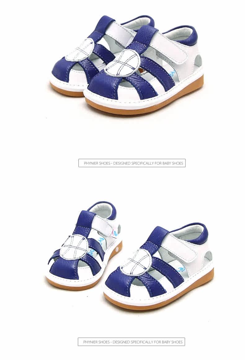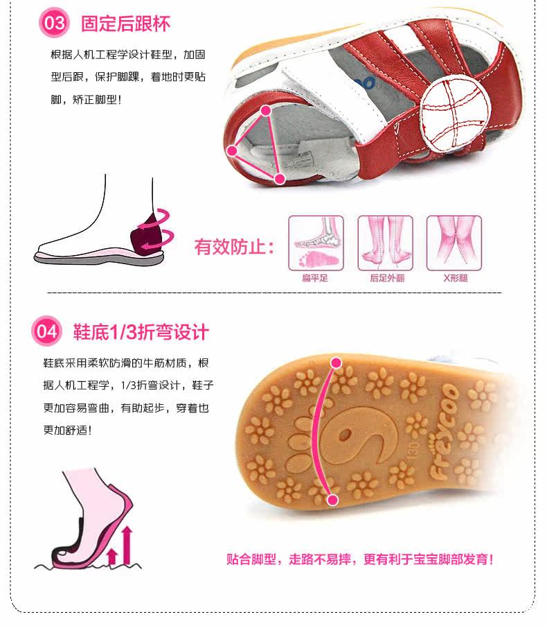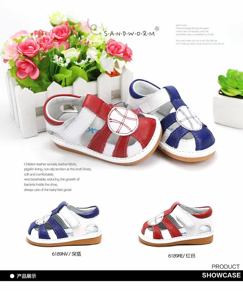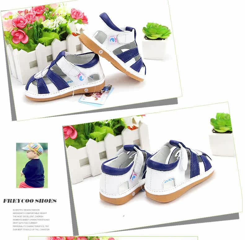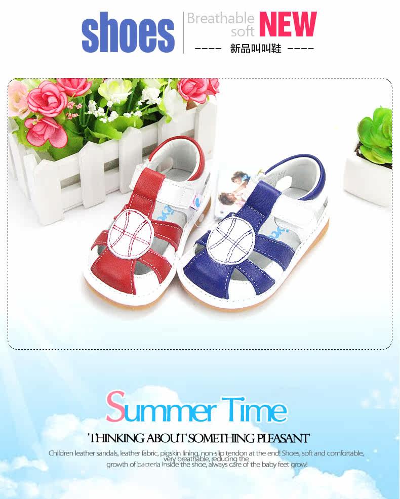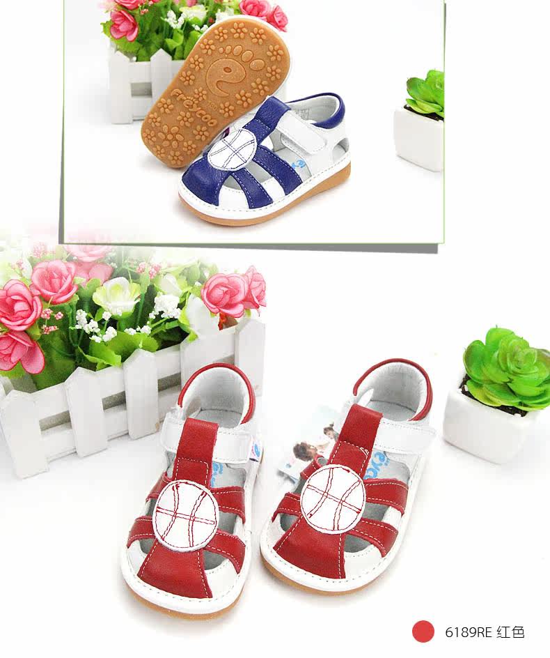 芙瑞可男女童凉鞋 真皮包头凉鞋 1-2-3岁宝宝鞋叫叫鞋儿童学步鞋