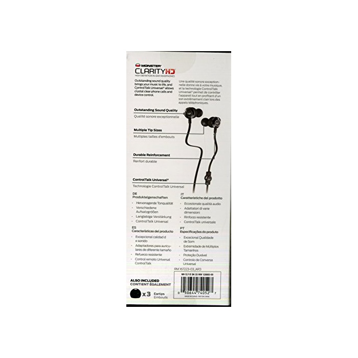 원본상품명: Monster CLARITY HD カナル型 イヤホン マイク付き ブラック MH CLY IE BK CU 【??正規品】
