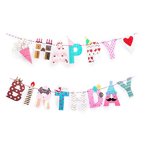-. Title : Fun and Colorful Gold Foiled Happy Birthday Banner Flags and Kids Party Hats and Crowns Set - Party Decoration Supplies