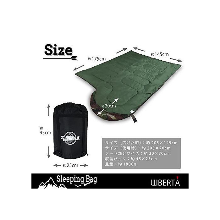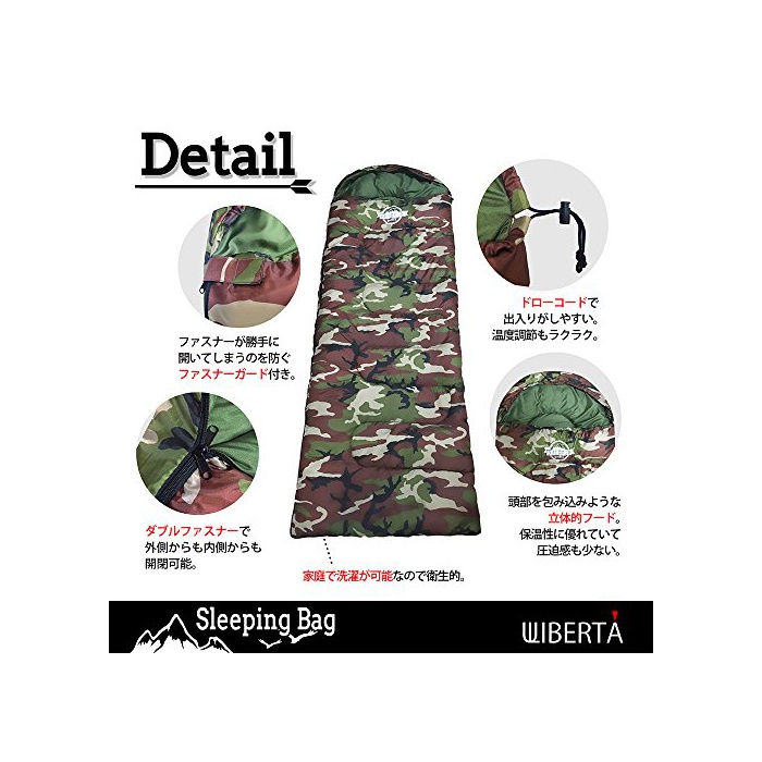 【쾌적 사용 온도】(약)-5℃~【최저 사용 온도】(약)-15℃【컬러】블랙,오렌지,블루,위장【내용물】침낭 본체,수납대