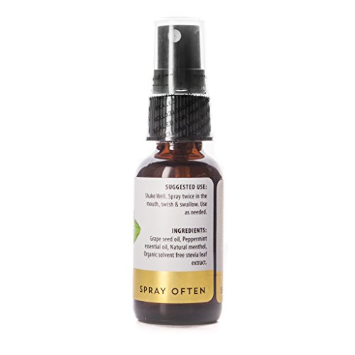 Looking for an all natural breath spray free of alcohol, artificial flavoring, GMO glycerine or xylitol? We have the answer for you! Our Clean Mint Breath Spray uses only MCT Coconut oil, therapeutic grade essential oils, and solvent free stevia extract to give you that fresh minty breath you crave, plus a pick me up of healthy essential fatty acids. What other breath spray can do that? Our 1oz amber glass bottle keeps your spray fresh while looking sleek and reducing the use of plastic. Recycle the bottle or re-purpose! - Alcohol free, No artificial sweeteners