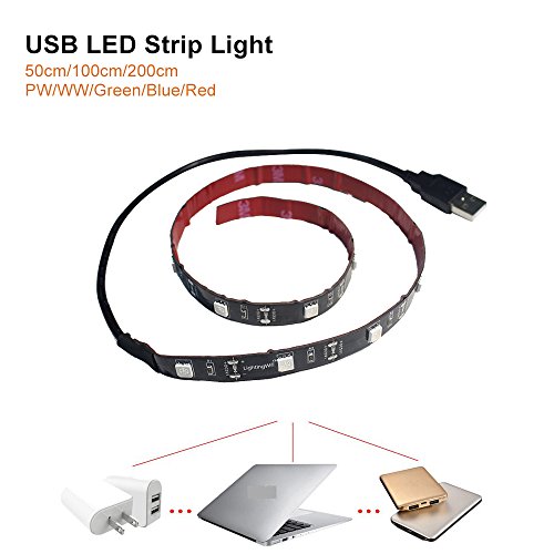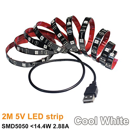 LightingWill 6.56ft/2M USB LED Strip Light SMD5050 Pure White LED TV Background Lighting Kit, LED TV Backlight Kit with USB port for HDTV PC Desktop Monitors Garden Home Kitchen Car Bar 5050PW150USB20