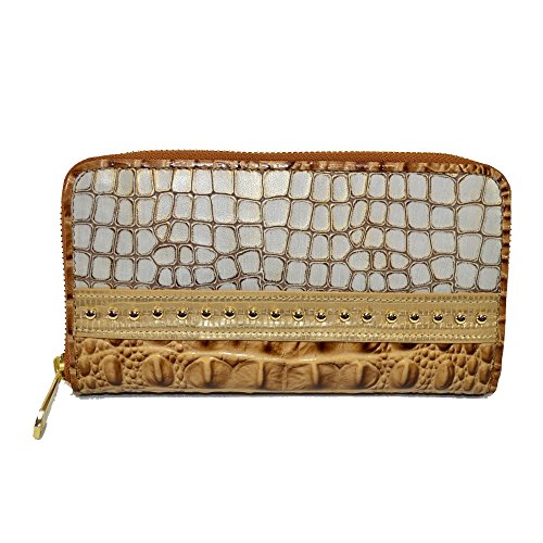 -. Title : Brahmin Suri Zip Clutch Wallet Beige La Vega Studded Clutch