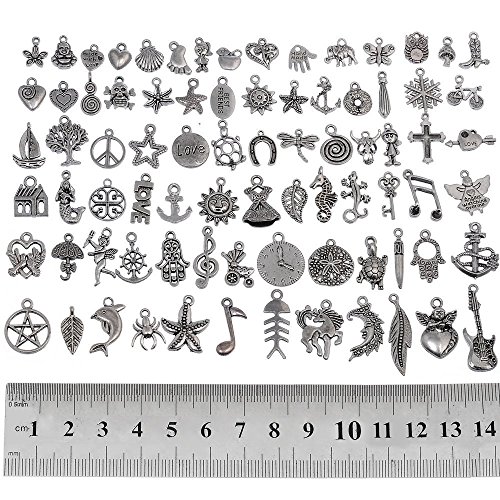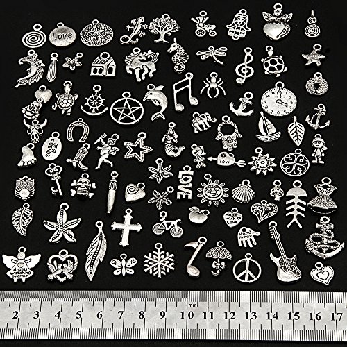 - Package includes: 160 pcs of Assorted Designs Tibetan Antique Silver Color Pendants