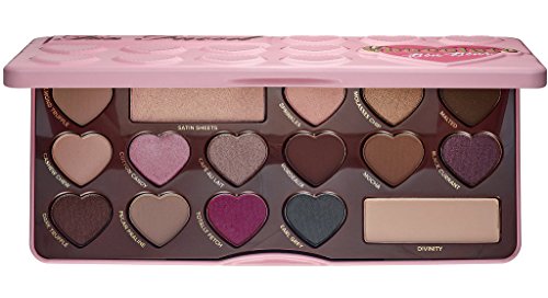 An eye palette from the Chocolate Bar Eye Shadow Collection with 16 heart-shaped, cocoa powder-enriched eye shades in brights and neutrals. 16 x 0.03 oz Eye Shadow in Almond Truffle, Satin Sheets, Sprinkles, Molasses Chip, Malted, Cashew Chew, Cotton Candy, Café Au Lait, Bordeaux, Mocha, Black Currant, Dark Truffle, Pecan Praline, Totally Fetch, Earl Grey, Divinity.Feature